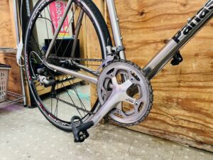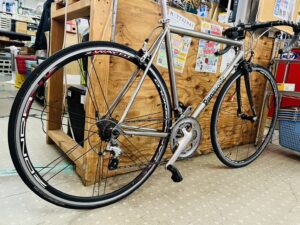 ペダルを踏み込んだ瞬間に縮むことでエネルギーをため込み、次の瞬間それを解き放つように弾かれ一気に加速していく、チタンの持つ特性がしっかり味わえる乗り心地です
