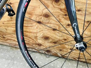 ・ホイールはCampagnolo Zonda 2-Way Fit(フロントホイールスポーク一本折れ)