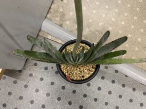 アロエ・コンプレッサ・シストフィラは、二列互生のアロエであり、葉が立ち上がることで大樹のようなユニークなフォルムになるのが特徴です。