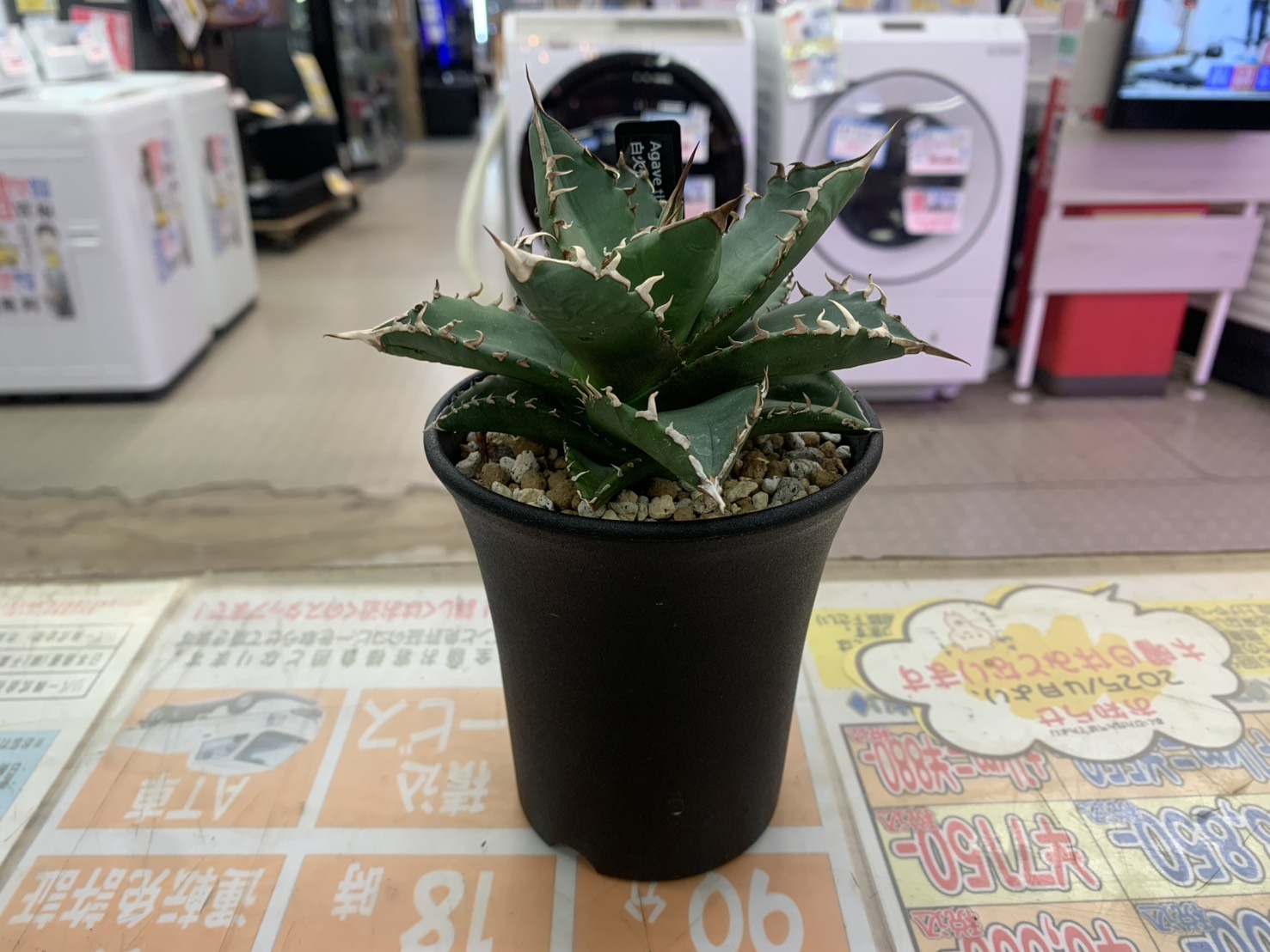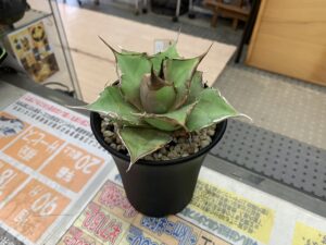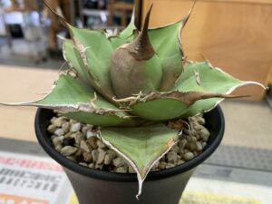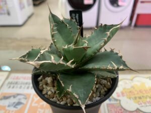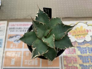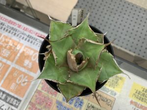肉厚の葉でサイドの棘はあんまり発達しない代わりに、葉先の部分に白く強い鋸歯を持つとても魅力的なタイプ。