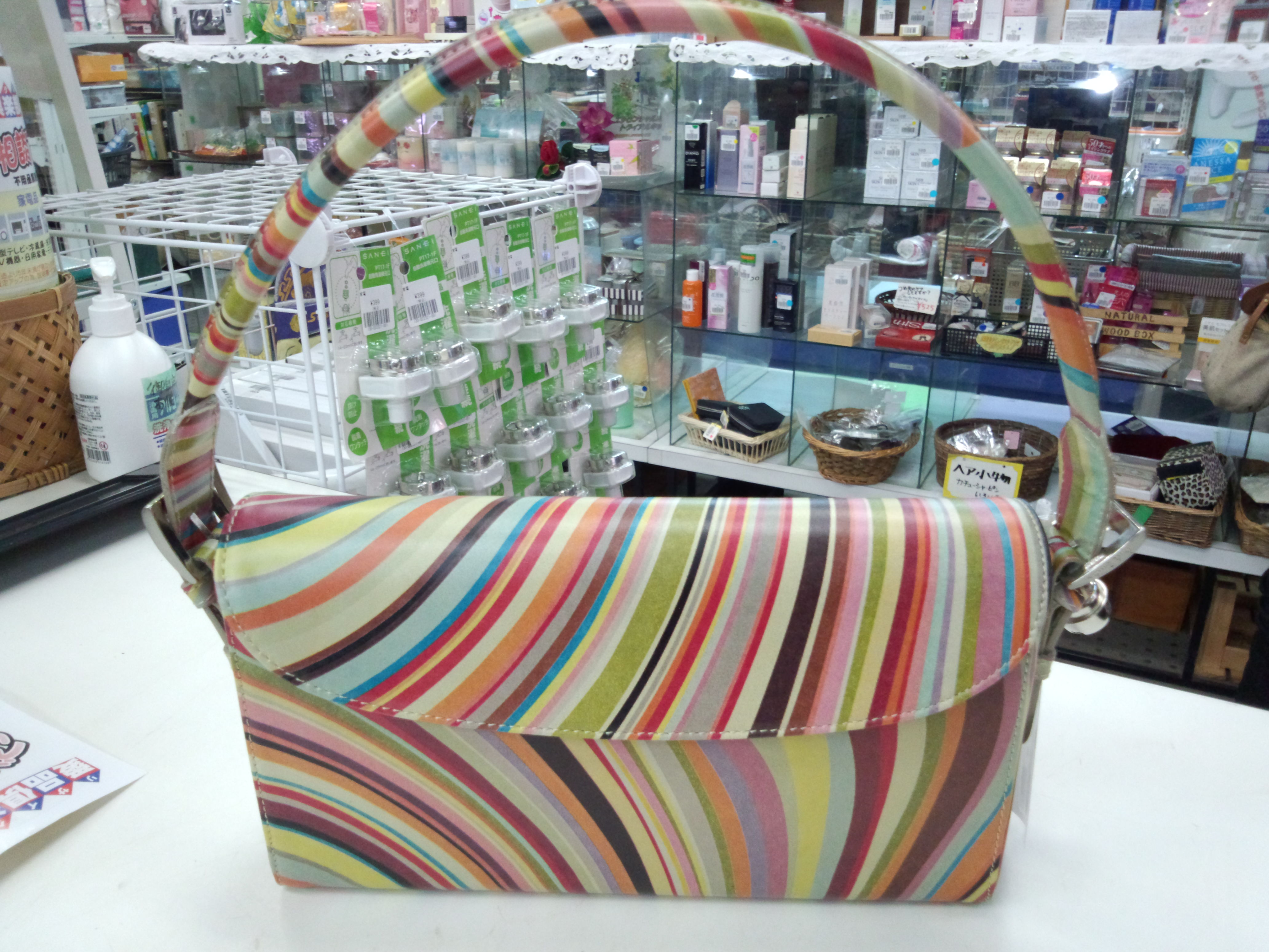 マルチ柄の印象的なハンドバッグです。