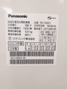Panasonic パナソニック 6.0kg衣類乾燥機 NH-D603