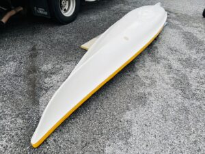 従来の設計とかけ離れた独創的な舟形と、FRPの表面硬度による滑らかな走りを実現しています。