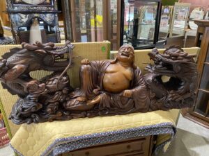 △縁起物|木彫り|龍|布袋様|木製オブジェ|横長約158cm