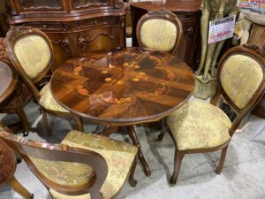 △イタリア製|象嵌|円卓ダイニング5点セット