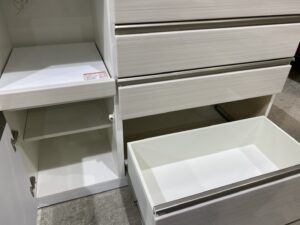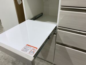 3・4段目は丈夫で動きのスムーズなフルスライドレールの為、奥の物も見やすく出し入れしやすくなっています。