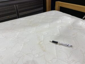 ※ベッドフレームの床板にシミ、マットレス表面にも小シミがあります。