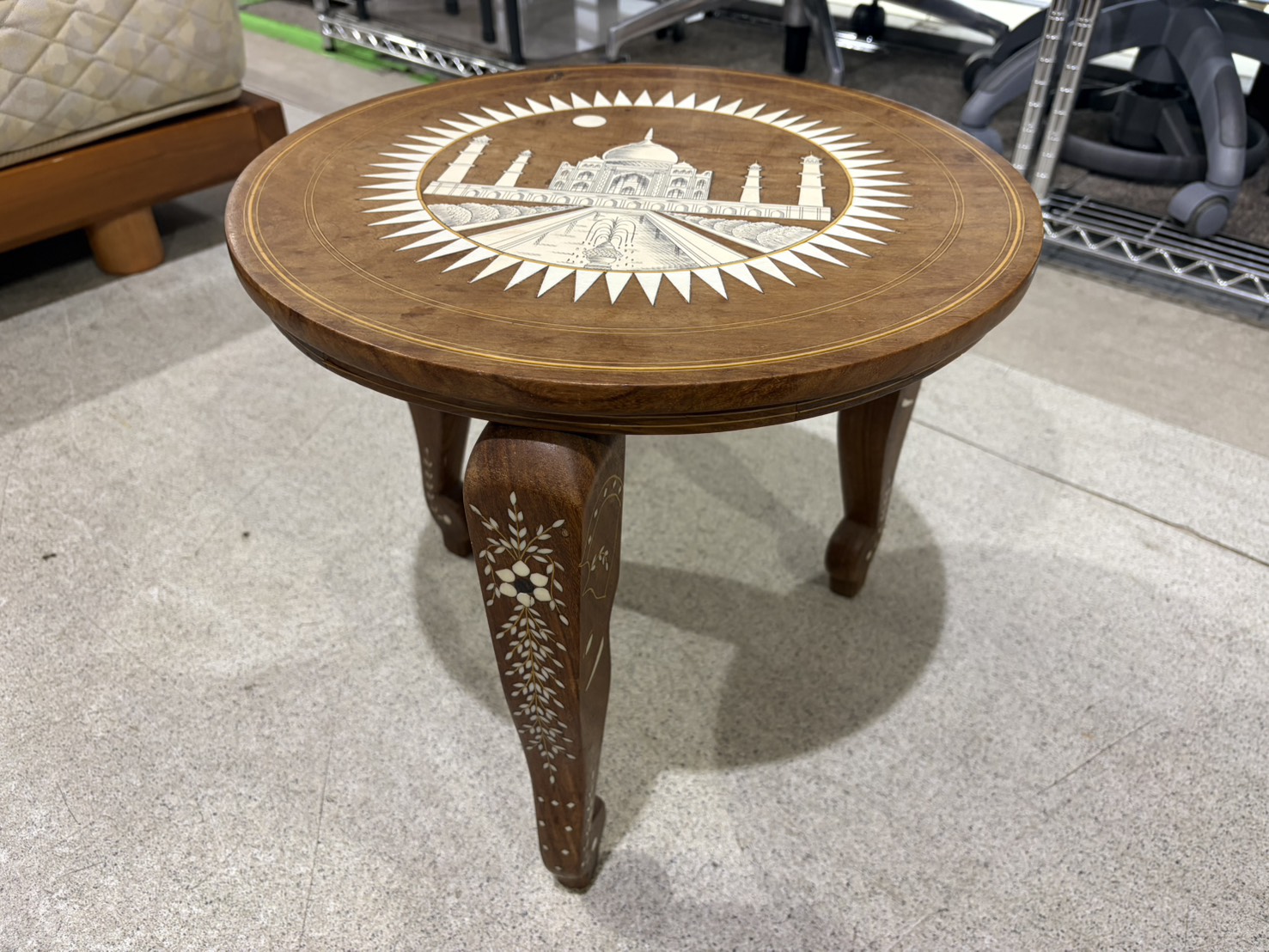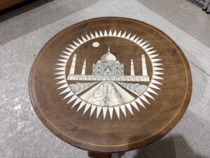 脚の部分まで象嵌細工が施され、天板には印象的なタージ・マハルが描かれています。