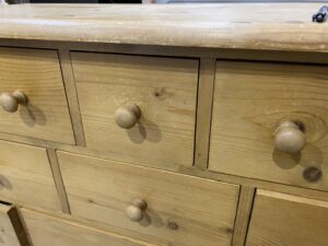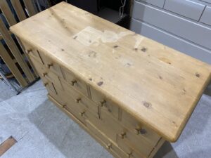 所々節のあ入るパイン材を活かした経年劣化も楽しんでいけるチェスト。