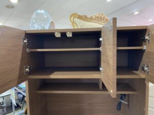 耐震ロックが付いていて揺れると扉(上台)をロックし、中の物が飛び出しにくく安心安全です。