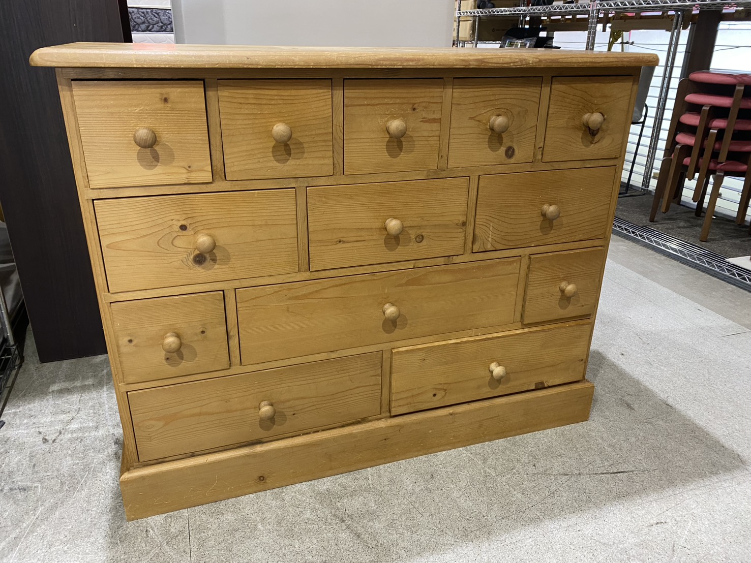所々節のあ入るパイン材を活かした経年劣化も楽しんでいけるチェスト。