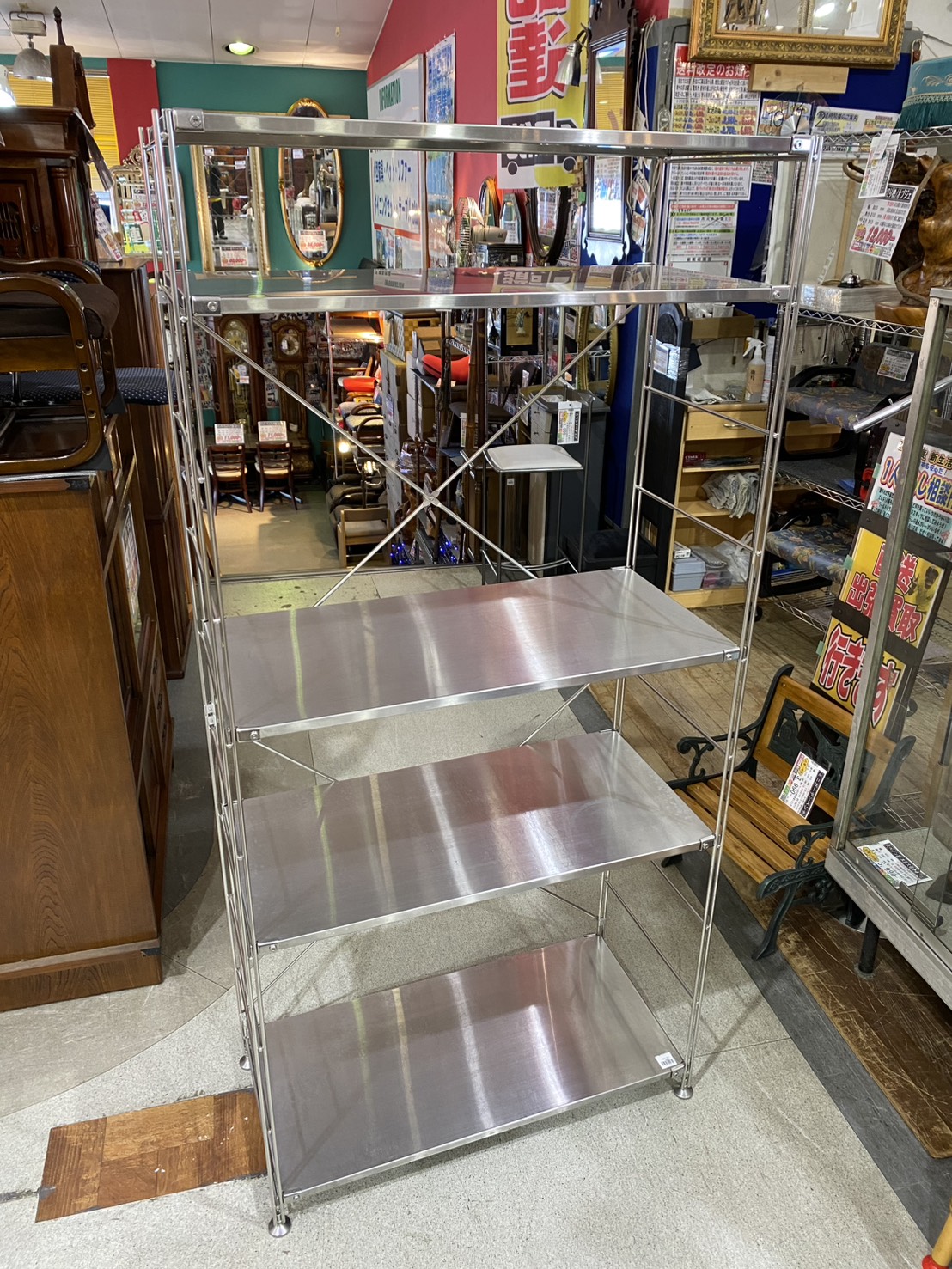 大型タイプのオープンラックは店舗の什器などにもおススメの棚で、インダストリアルモダンなインテリアにも最適です。