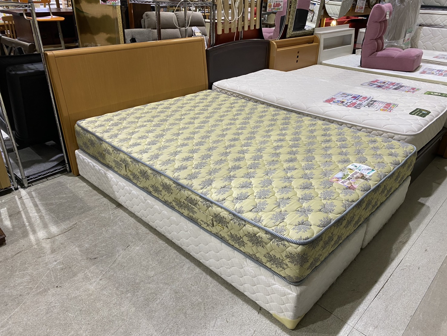 寝心地と耐久性の優れたダブルクッションを使用したダブルサイズのベッドです