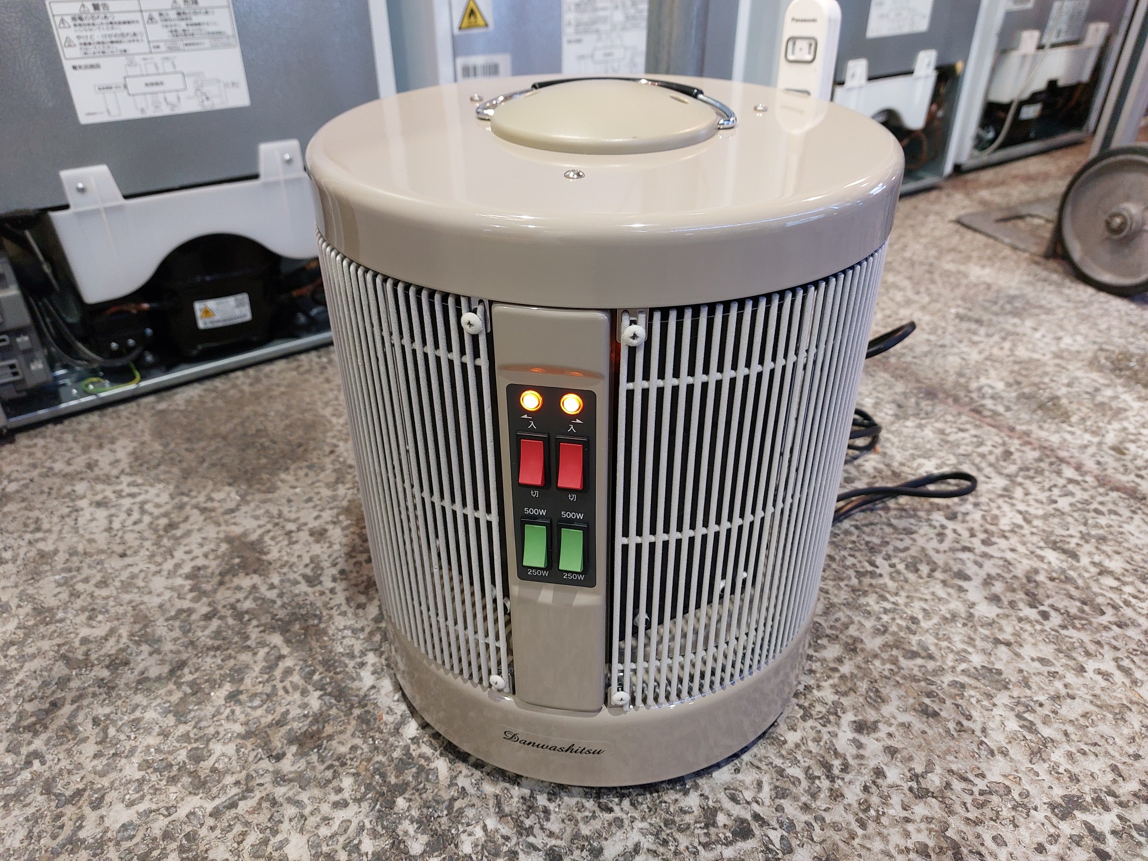 遠赤外線パネルヒーター「暖話室 1000型」は、360度全面にパネルを採用した、全方向に遠赤外線を放射して暖める、円柱型のパネルヒーターです。