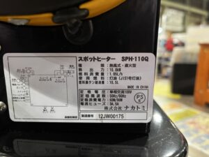 ナカトミ SPH-110Q スポットヒーター