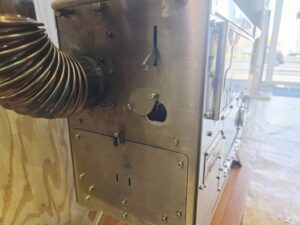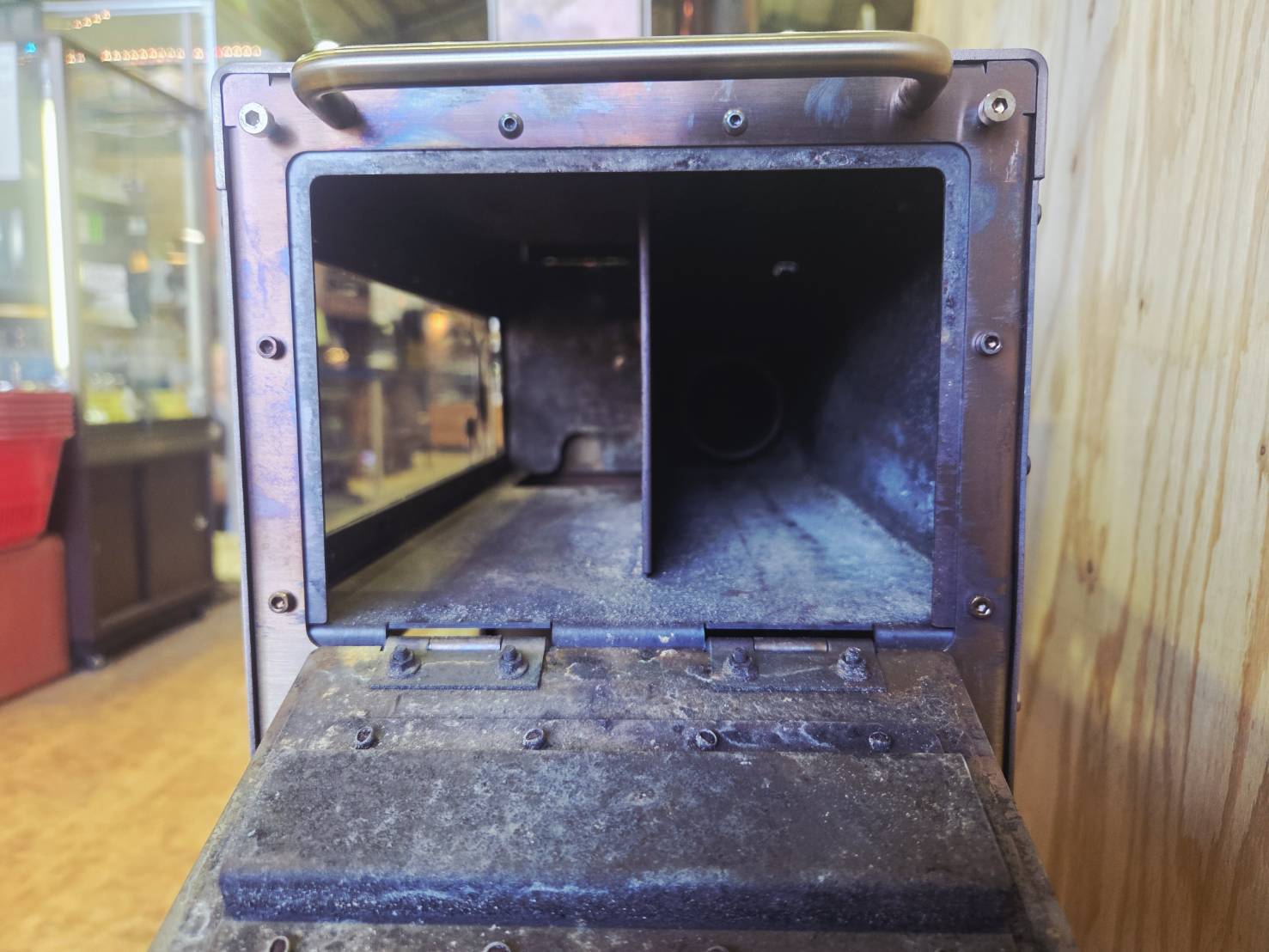 ストーブ前面には大きなガラス窓がついており、煙突まで発生した対流で横に流れる美しい炎を見ることができます。