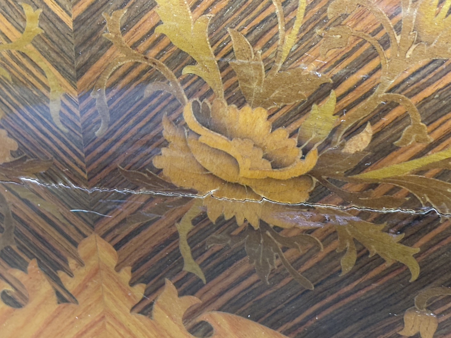 鮮やかな花模様が目を引く、気品あふれる飾り棚です。