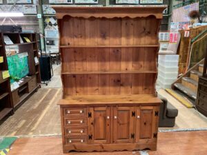カップボード形式となっており、上段がオープンな飾り棚、下段が扉付きの収納と引出しになっており、イギリスやアメリカの伝統的な形式です。