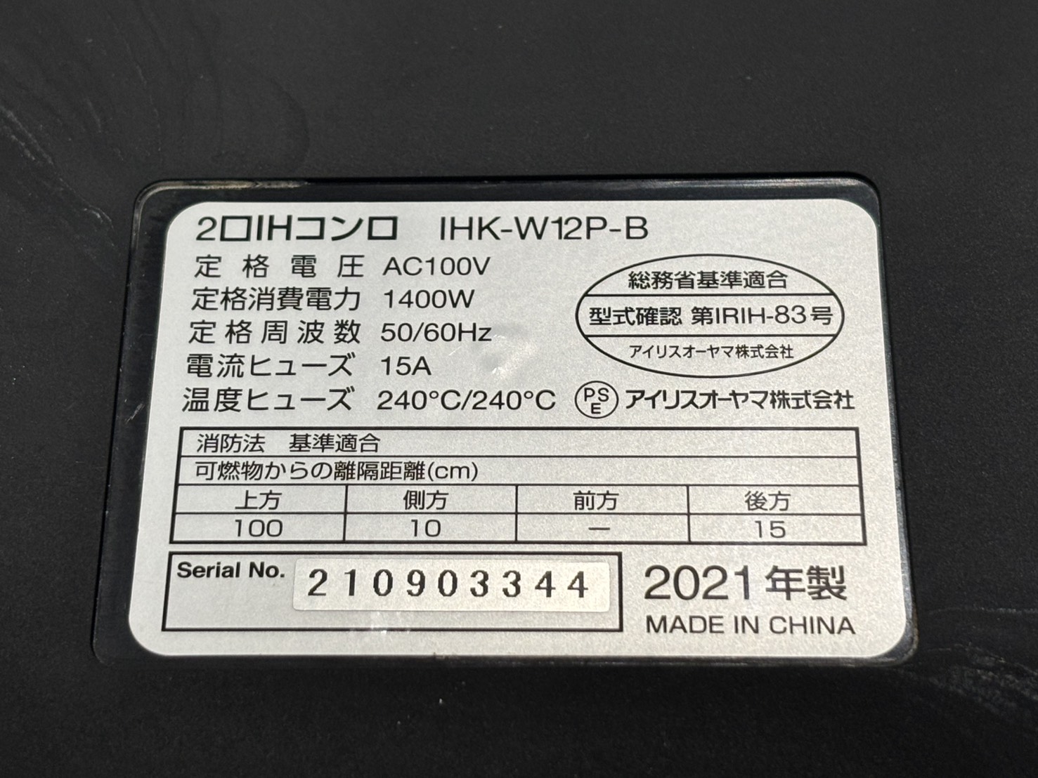 アイリスオーヤマ/IHクッキングヒーター/IHK-W12P-B