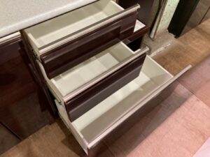 下段の引出しはスムーズに開閉ができるフルスライドレール