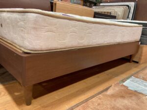 マットレス中央部分ヘタリ、フレーム細かな傷があります。