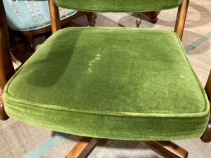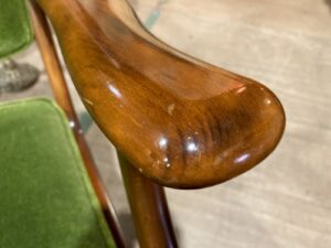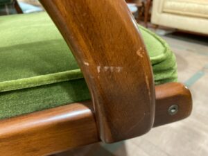 木製のフレームとモケットグリーンの自然を連想させる色合い