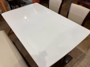 光沢のある白天板のダイニングテーブル