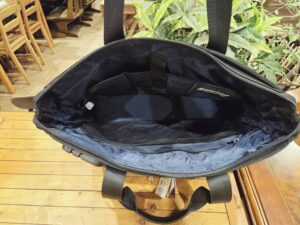 ダイヤルロック付きの機能性を追求したビジネスバッグ。A3サイズ対応で、大きめのファイルや書類も入ります。