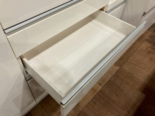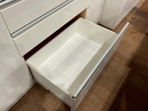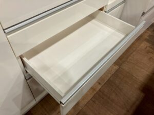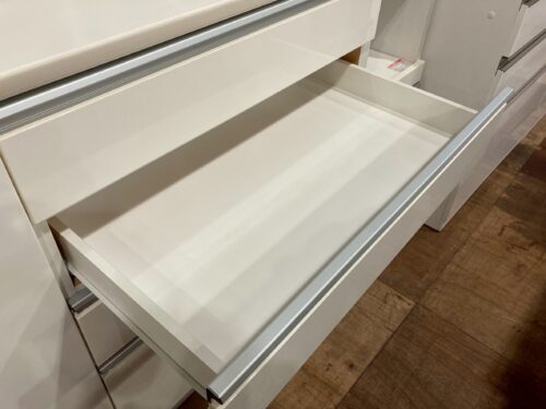 下段の引出しはスムーズに開閉ができるフルスライドレール
