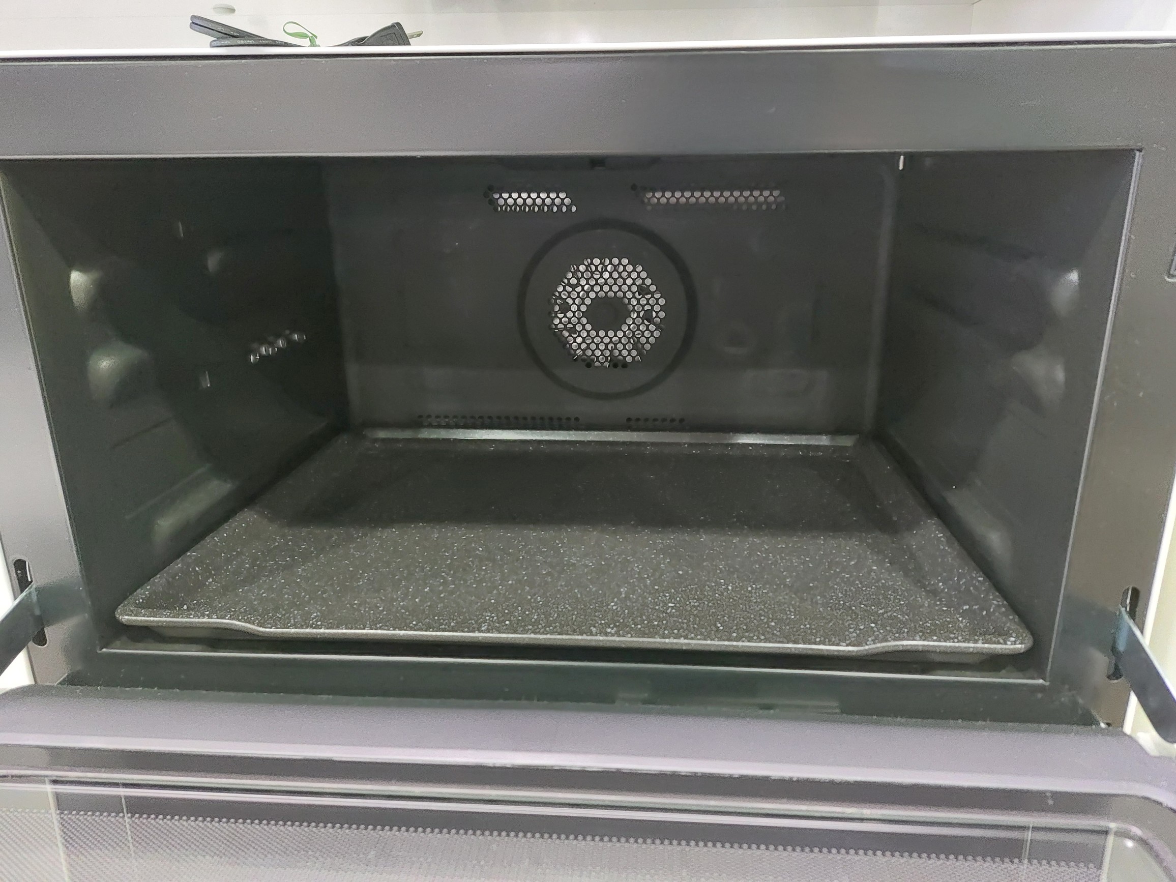 大火力でこんがり焼き上げる「310℃熱風コンベクションオーブン2段」を採用。「Wスキャン」で適温にあたため、ムラを抑えて解凍できる。