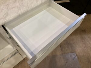 右下の開き扉は収納した物が見えやすく出し入れもしやすいです。