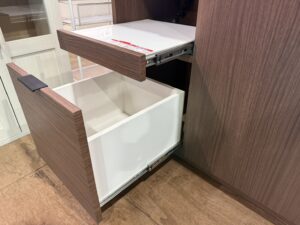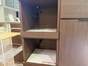 左下3段目の引出しがフルスライドレールなので奥の物までしっかりと見渡すことができます。