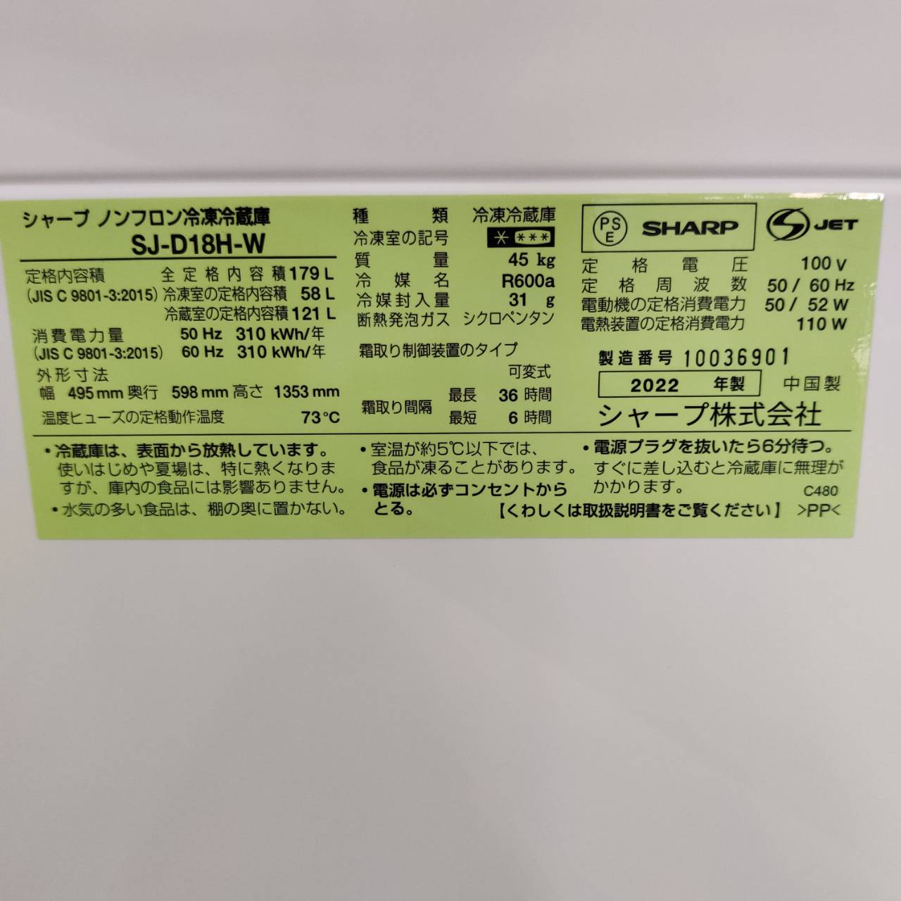 型番 : SJ-D18H
