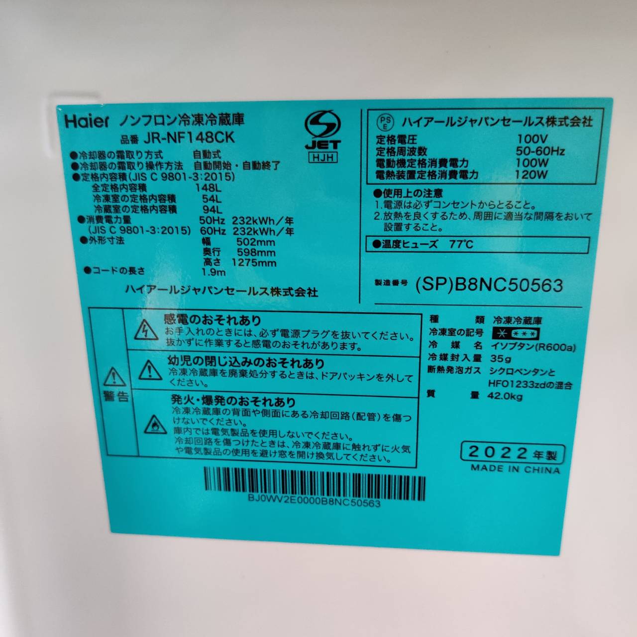 型番 : JR-NF148CK
