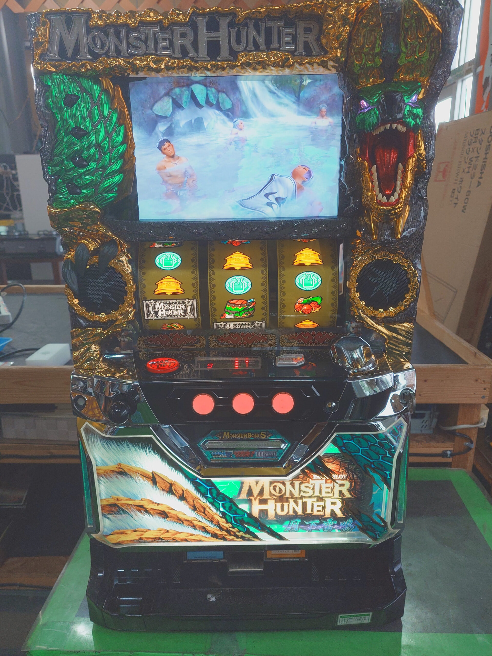 ハンティングアクションゲーム「モンスターハンター」とのタイアップ機。