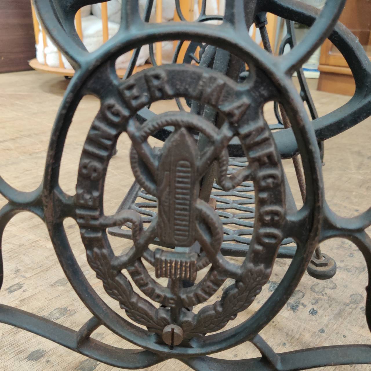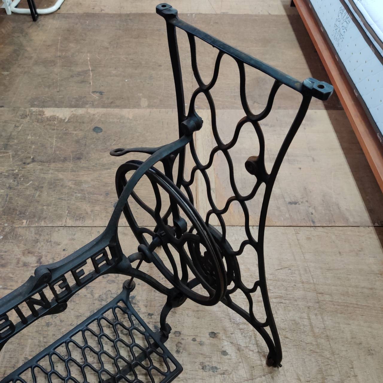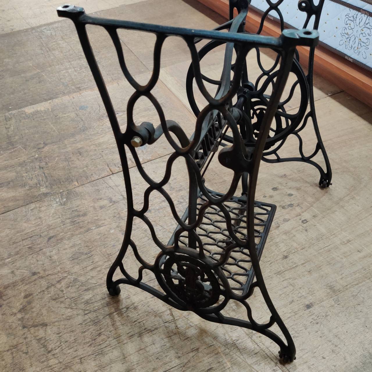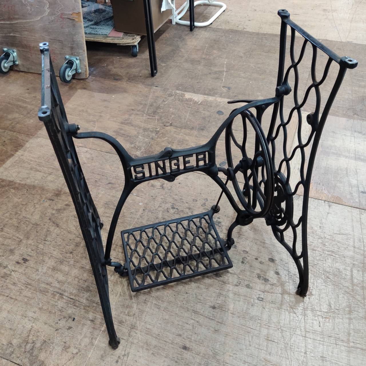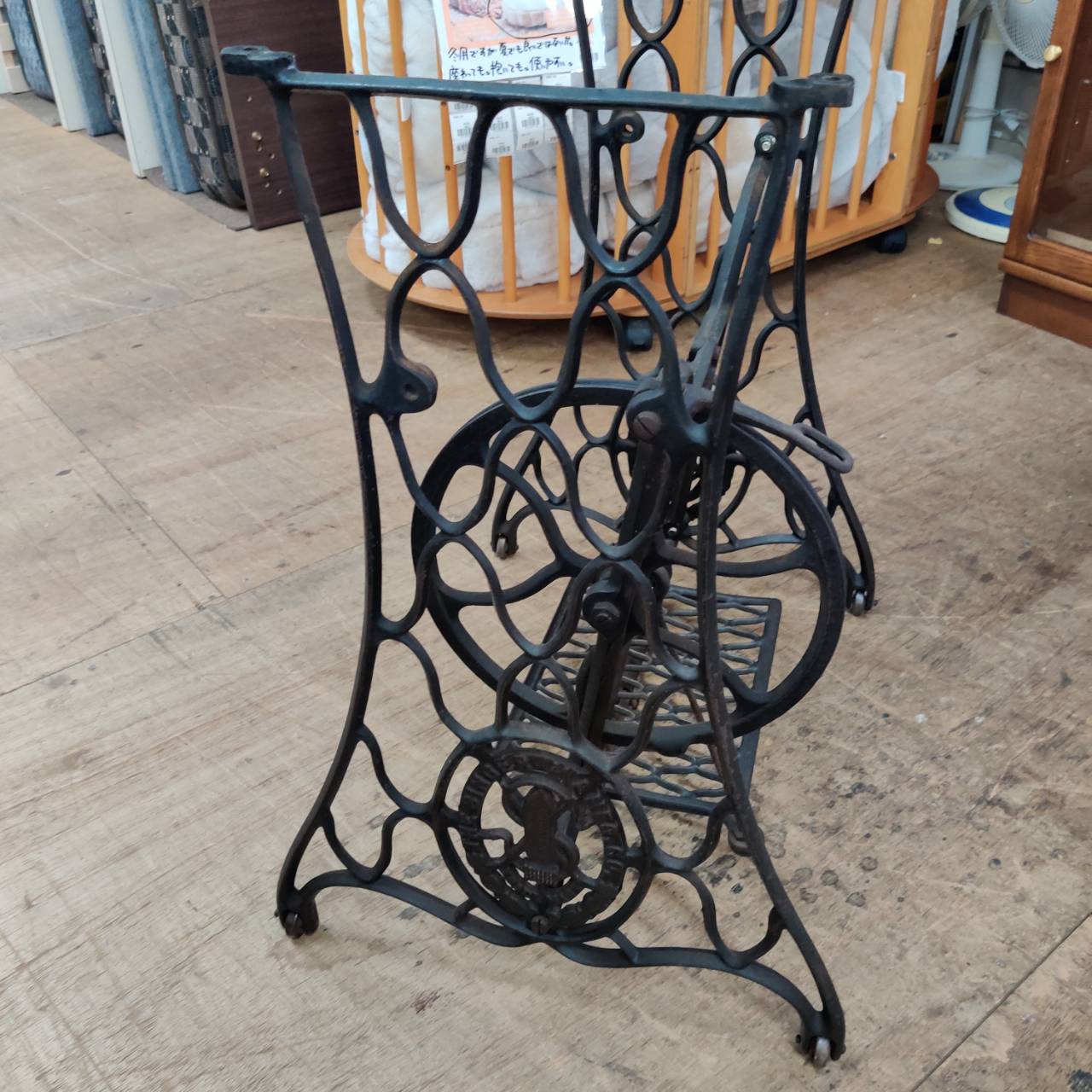ペダルや側面についた車まで編み込みのフレームのものは、戦前のアンティークミシンにのみ見られるそうで、大変レアものらしいです!