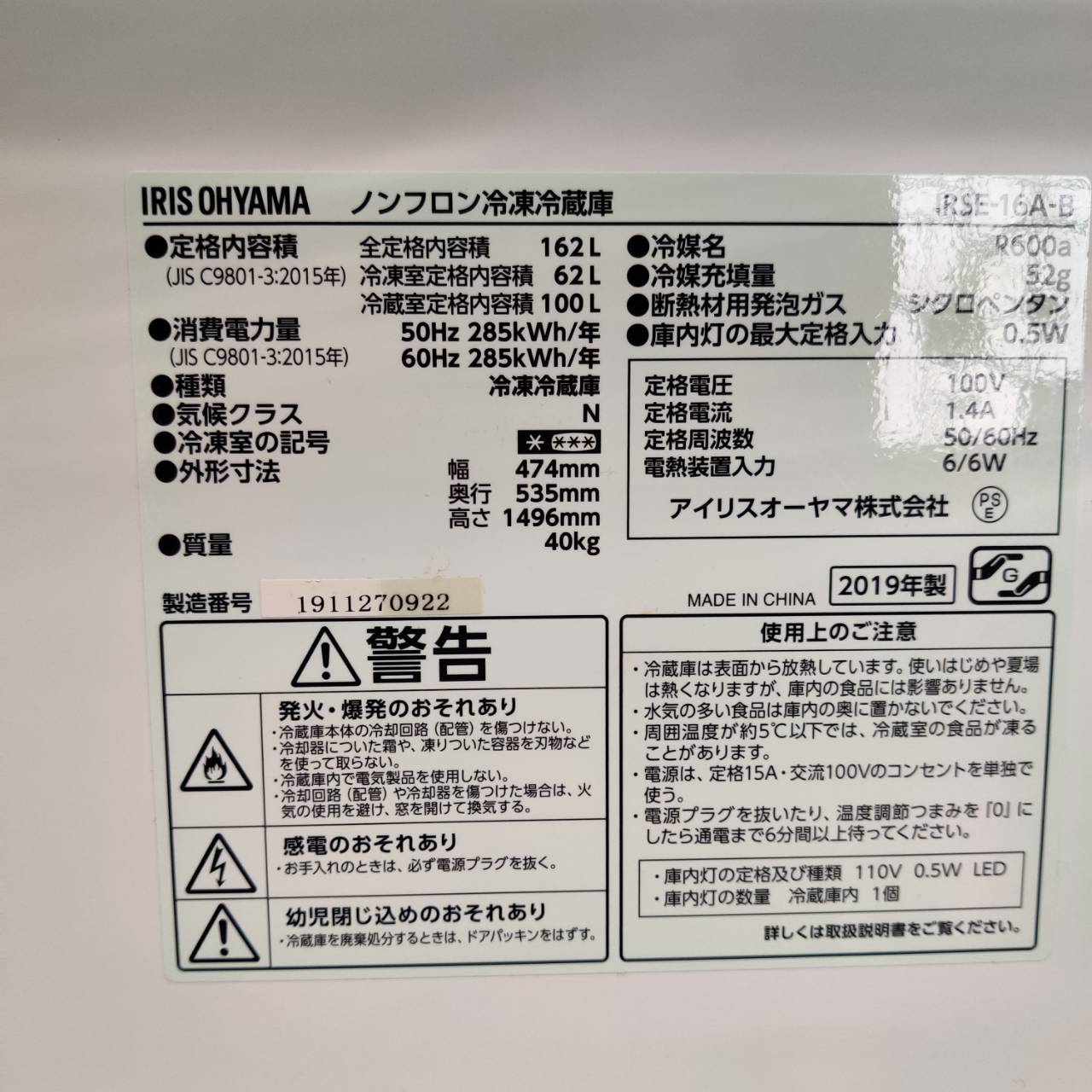 商品名 : 162L 2ドア 直冷式 冷凍冷蔵庫