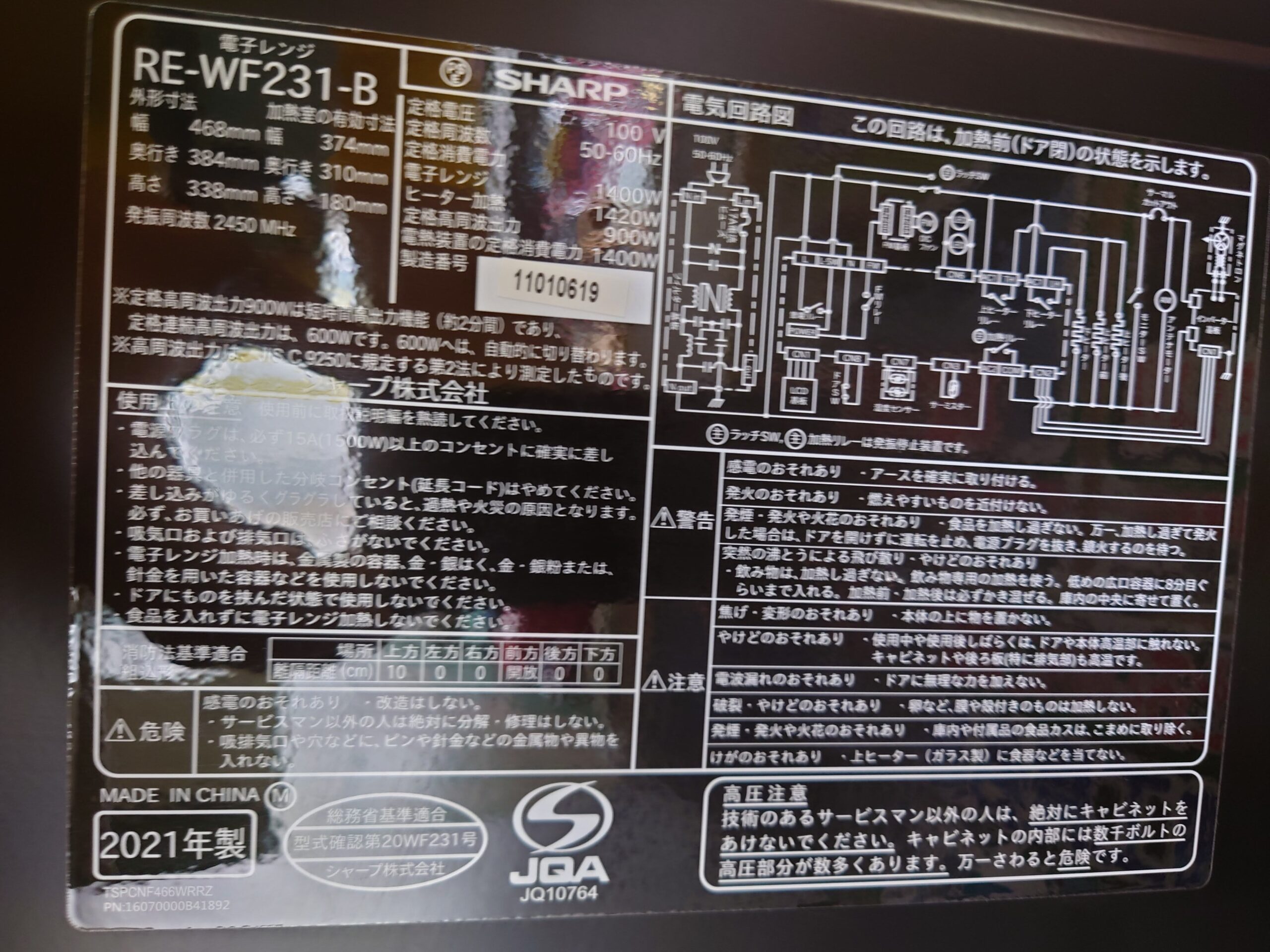シャープ 2021年製 過熱水蒸気オーブンレンジ REーWF231