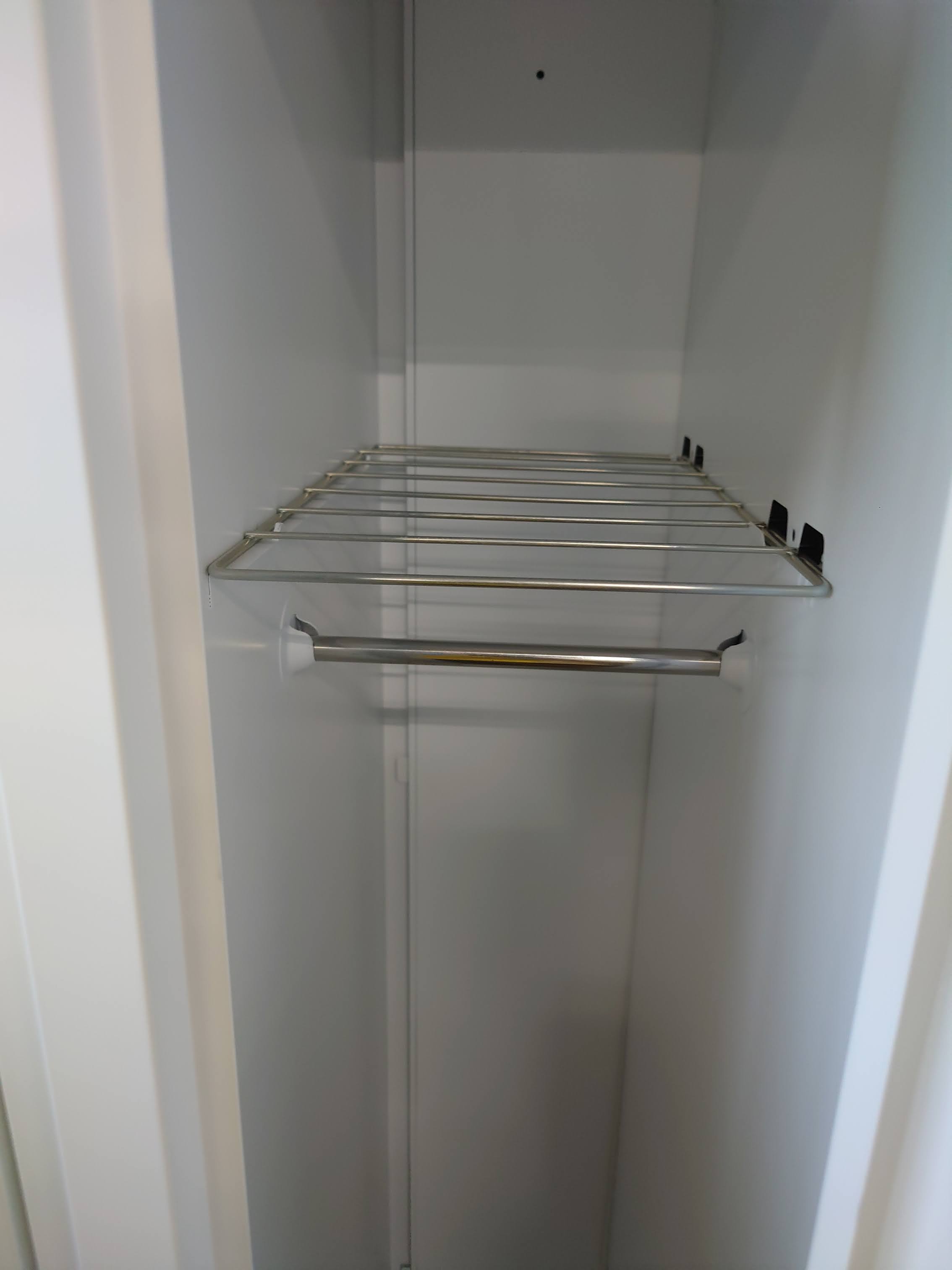 鍵がロックしないと外せないモデルなので、貴重品を入れて鍵閉め忘れる。なんて事が無いのが特徴です。ポールと網棚も付いているので収納する際に便利です。