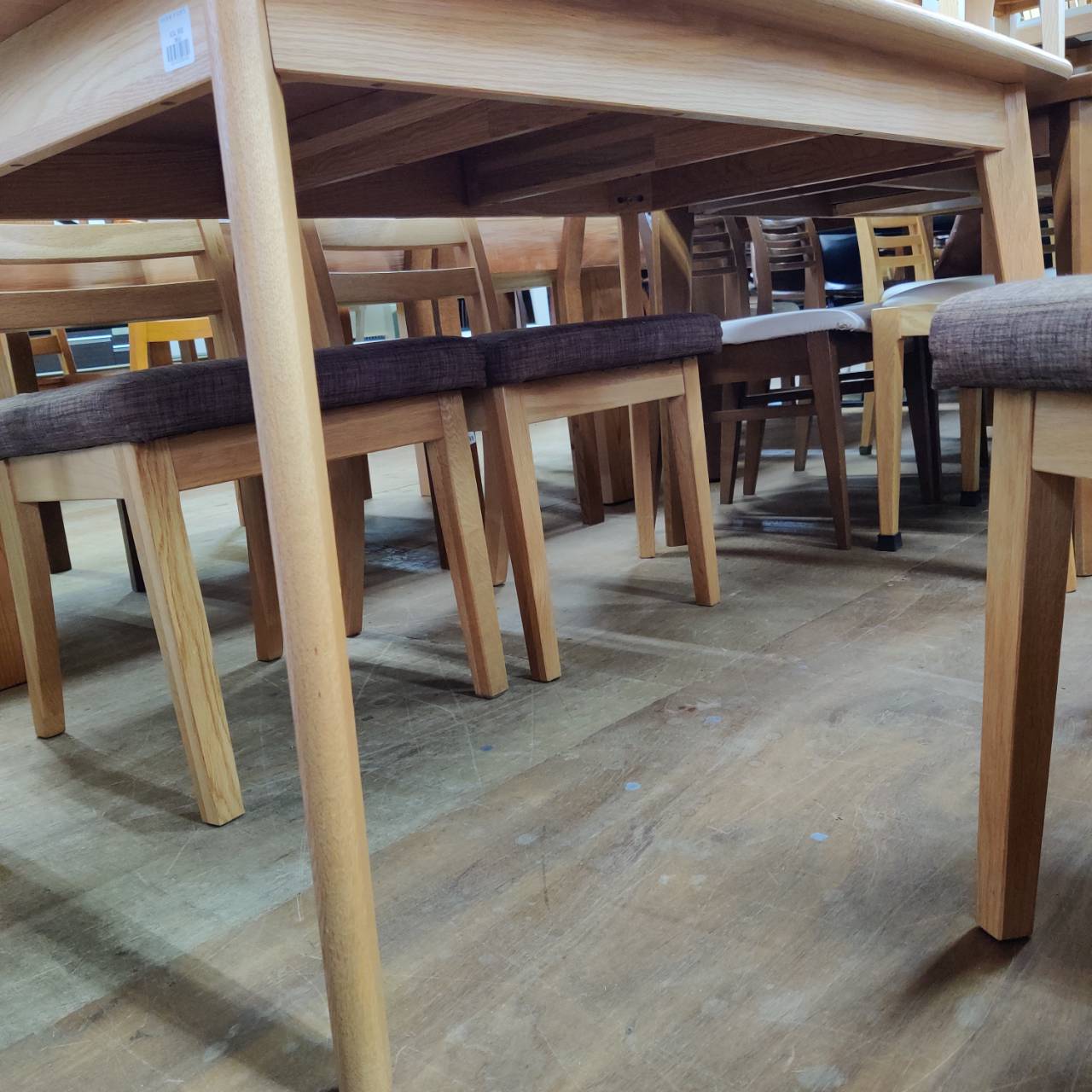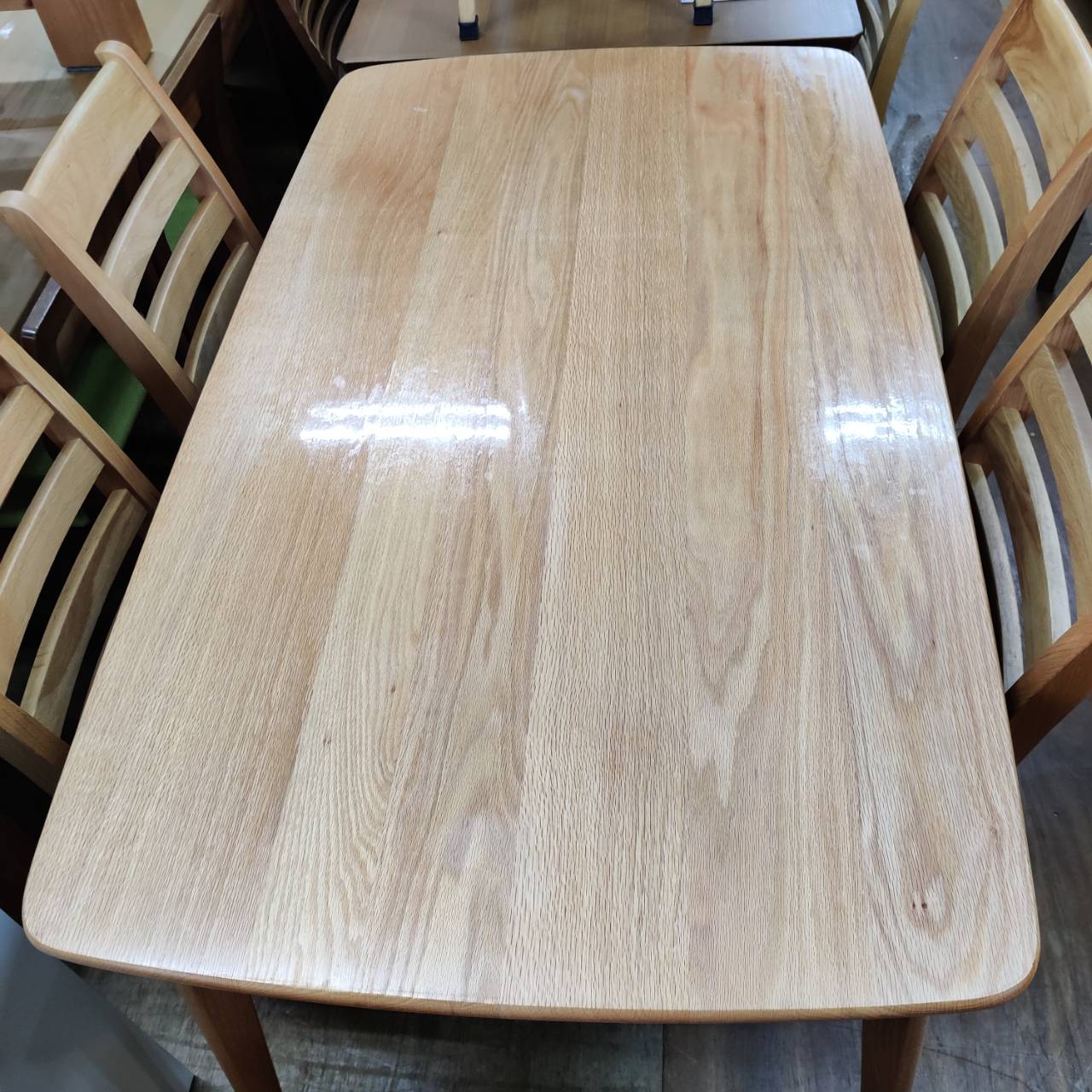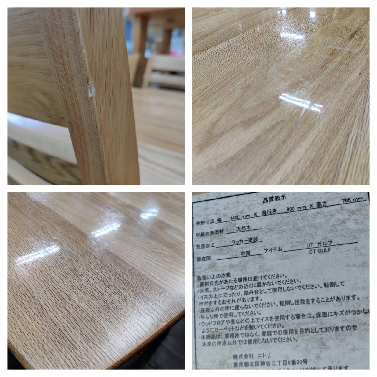 テーブルの天板はオーク無垢材で、木目や節、色合いは一点ごとに違うので、世界にひとつだけの表情を眺めながら食事ができます。