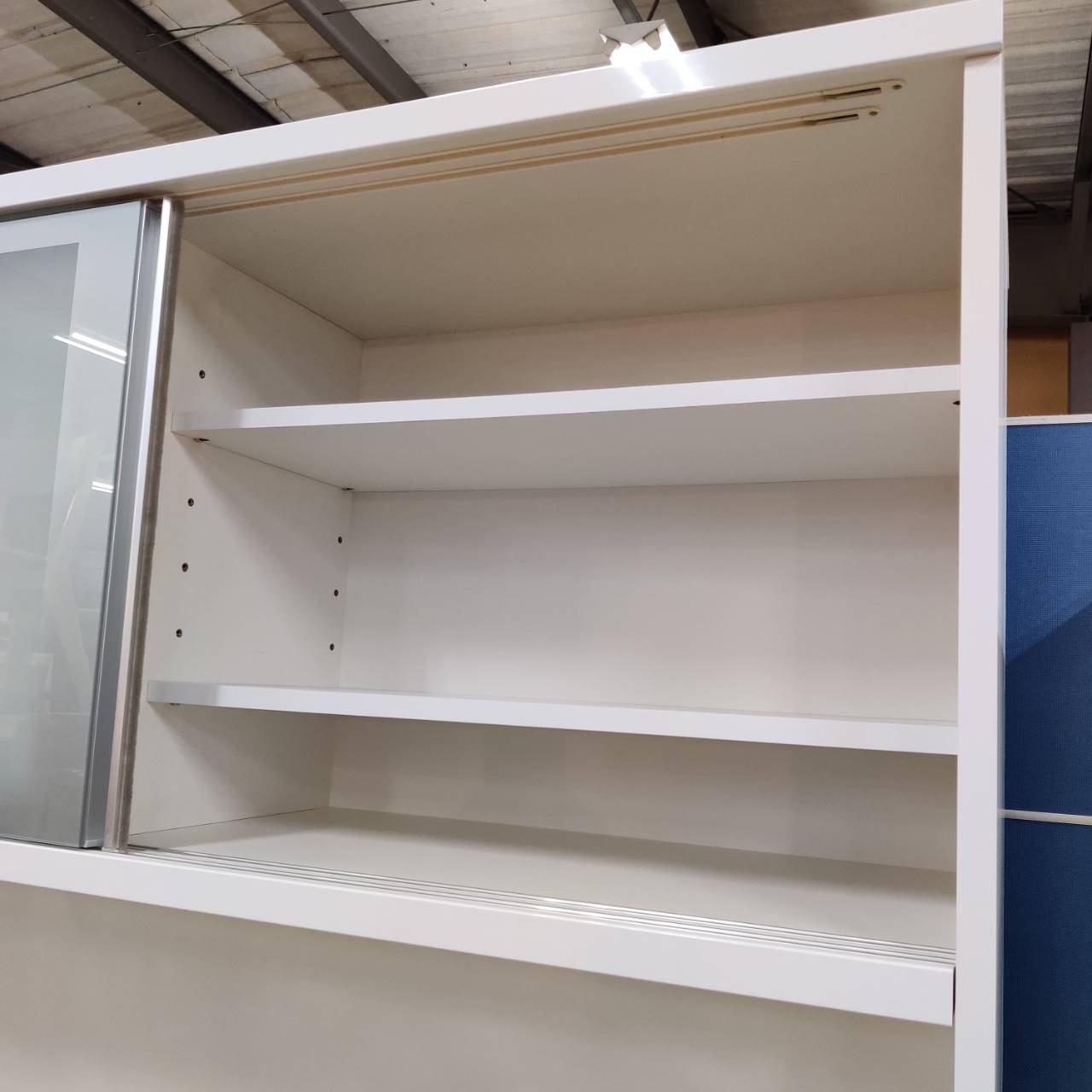 上段の引き戸は、中身をオシャレに隠せるミストガラス仕様。