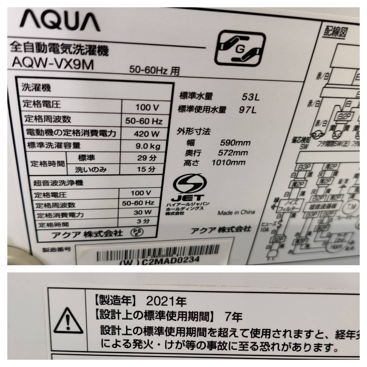 型番 : AQW-VX9M (Prette)
