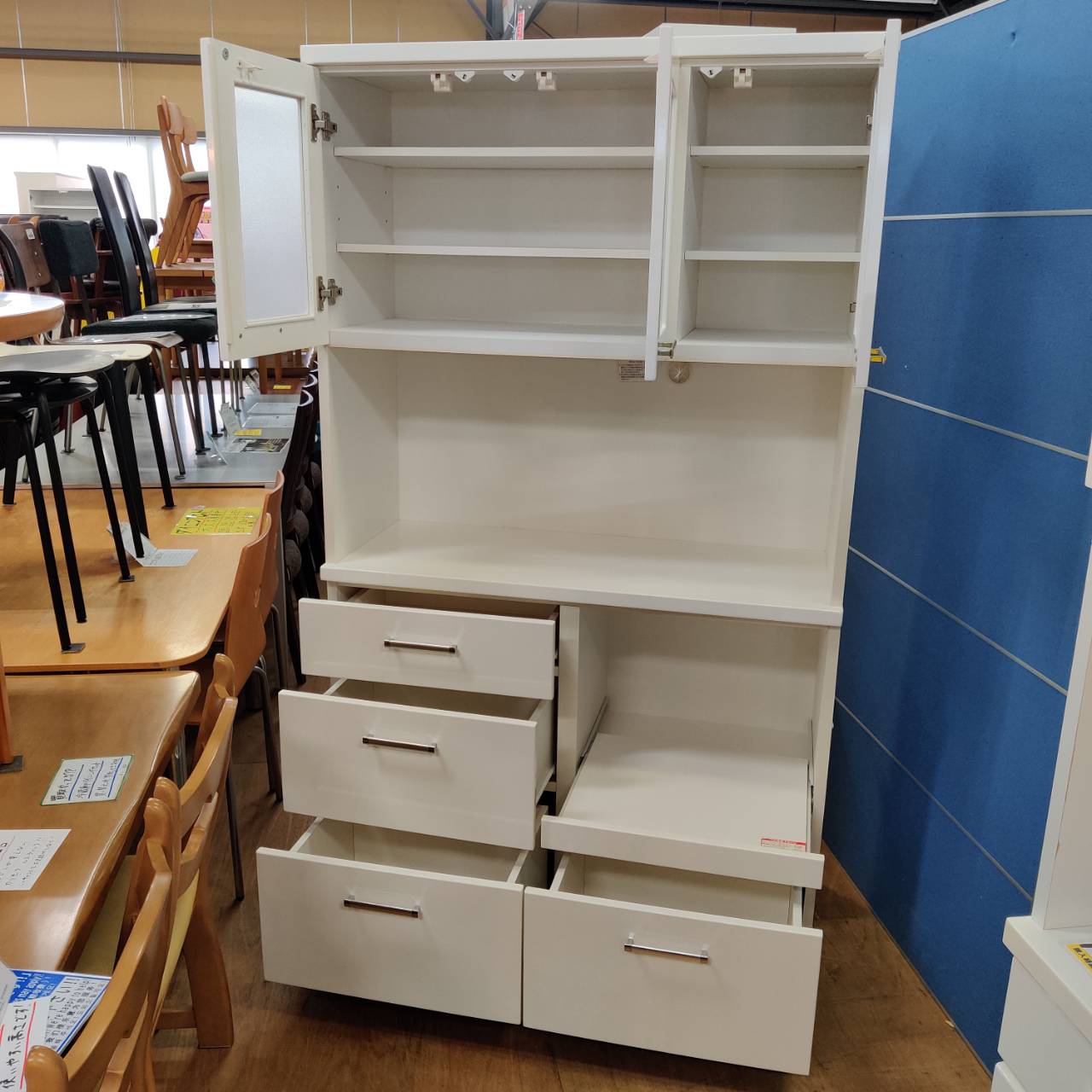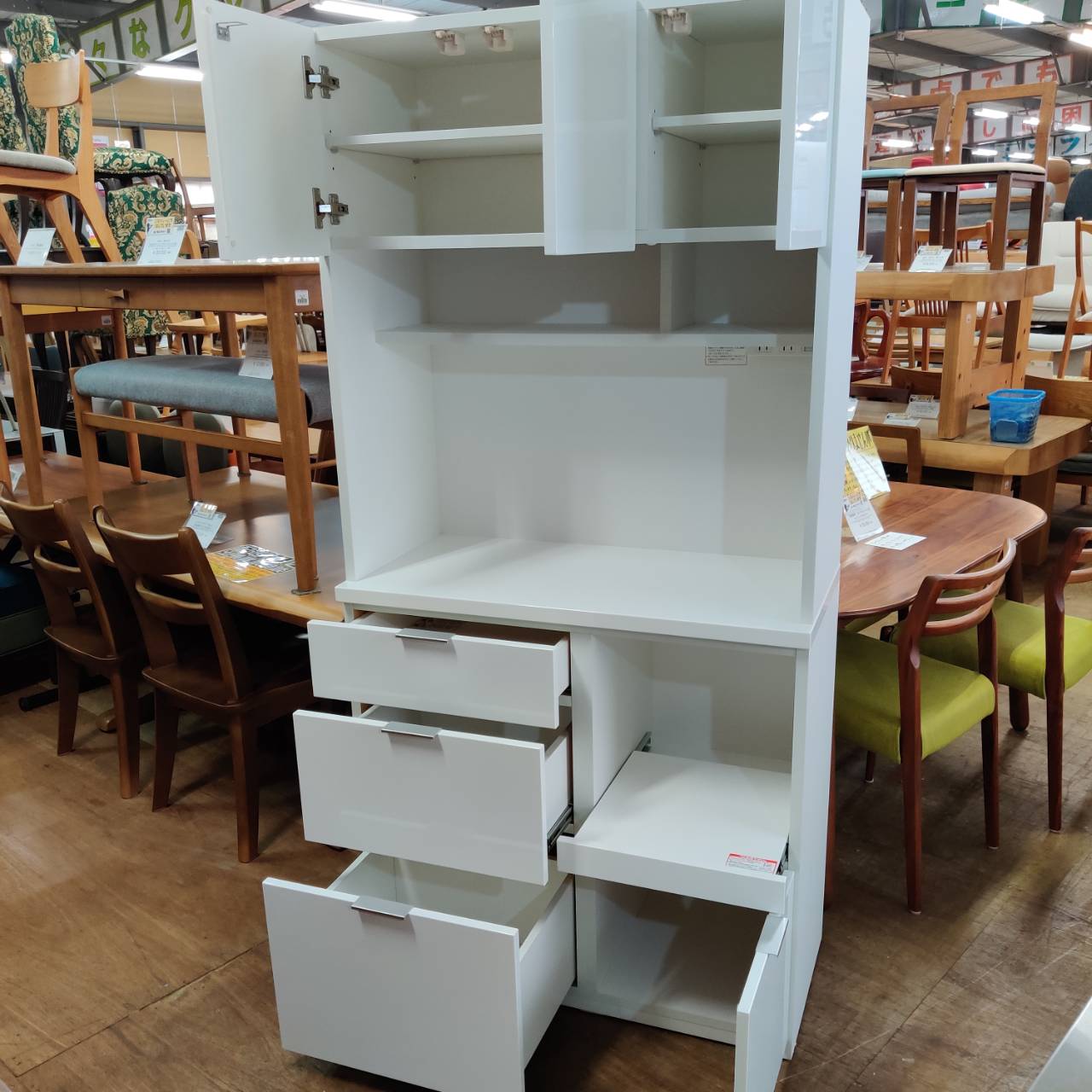 キッチンに立つのが楽しくなるような、真っ白でピカピカのキッチンボードが入荷しました。