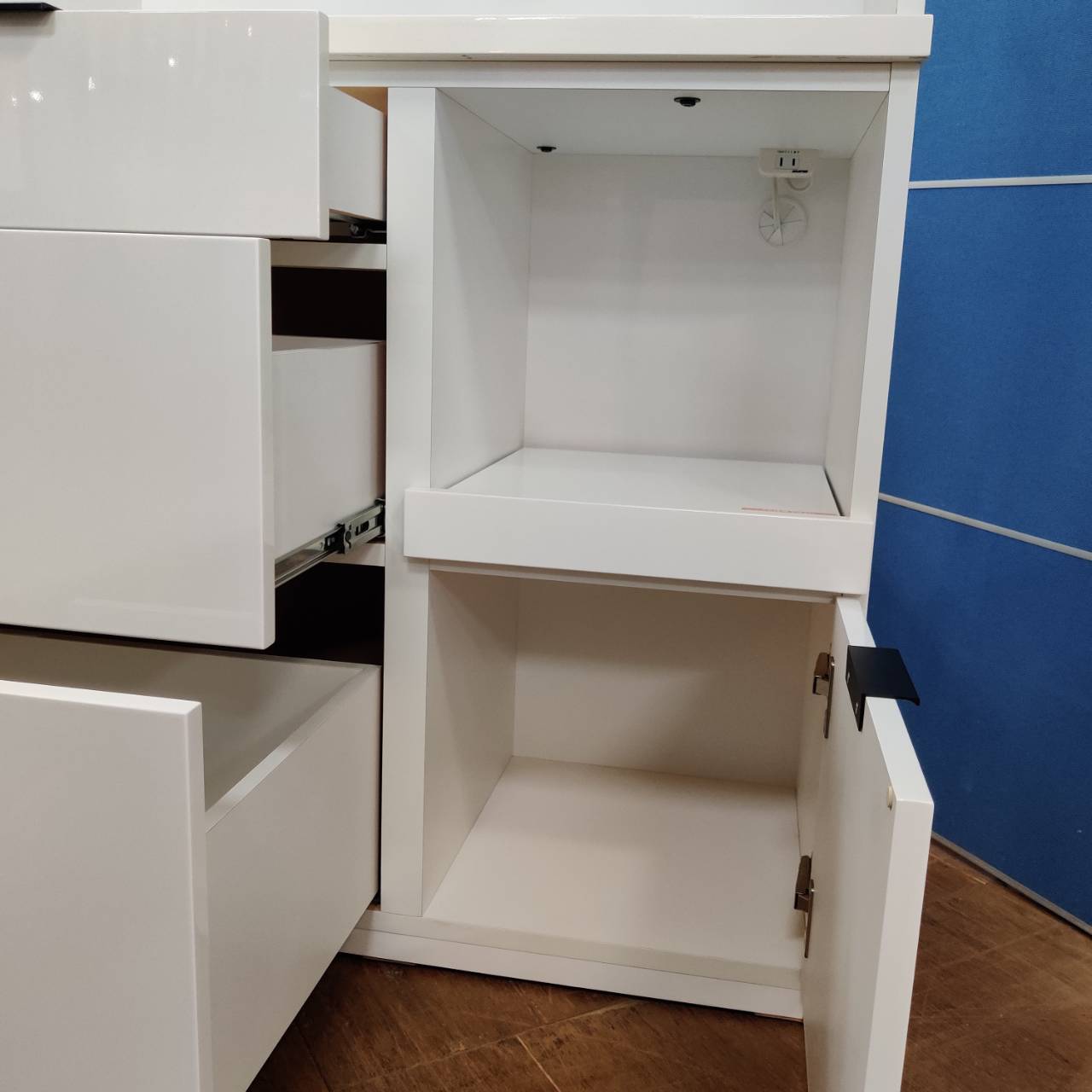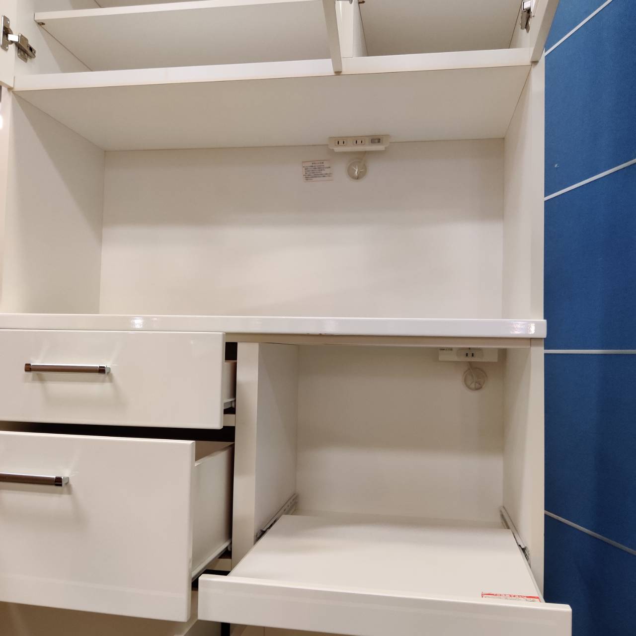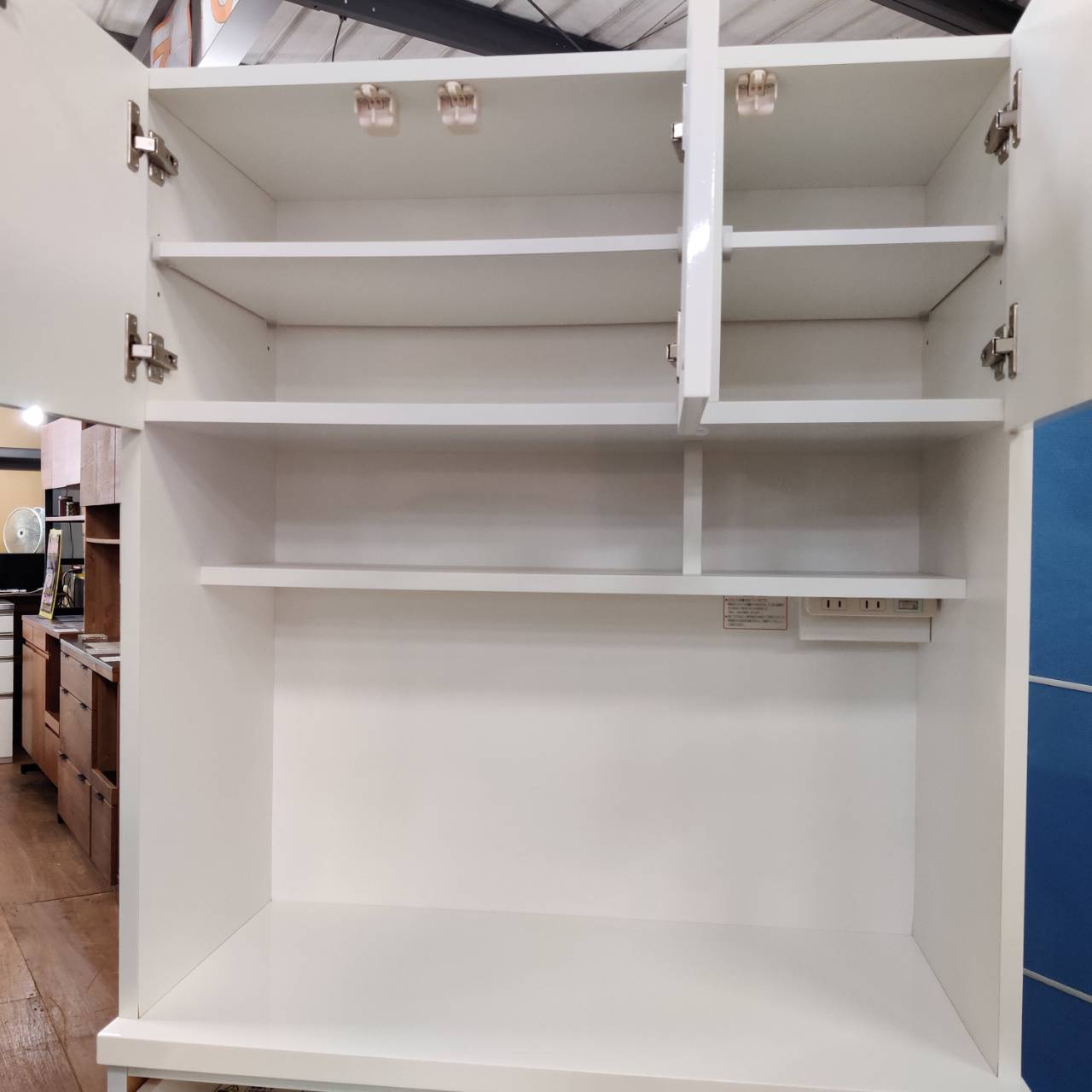 全段フルオープンレール、コンセント付き、スライド棚、可動棚