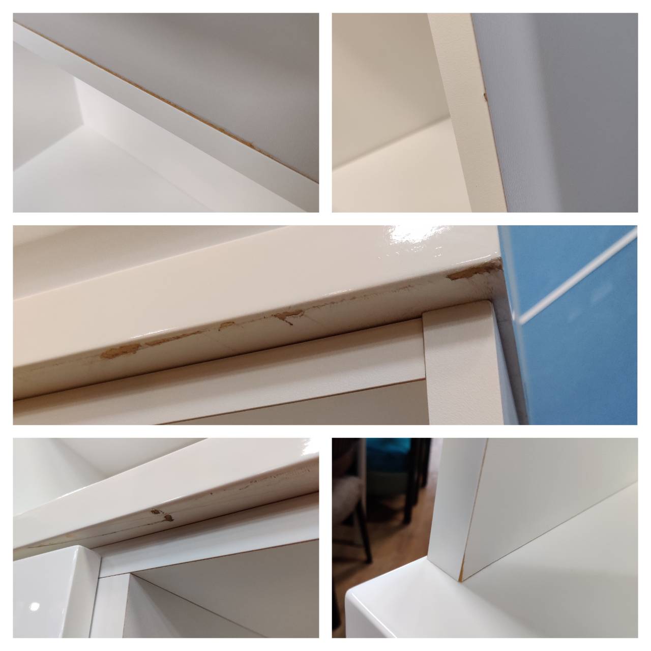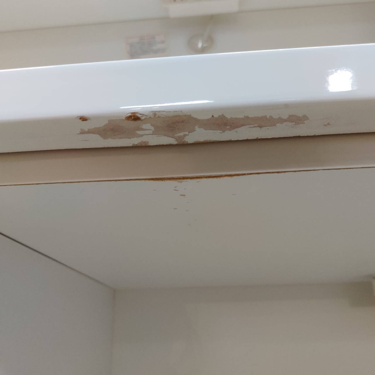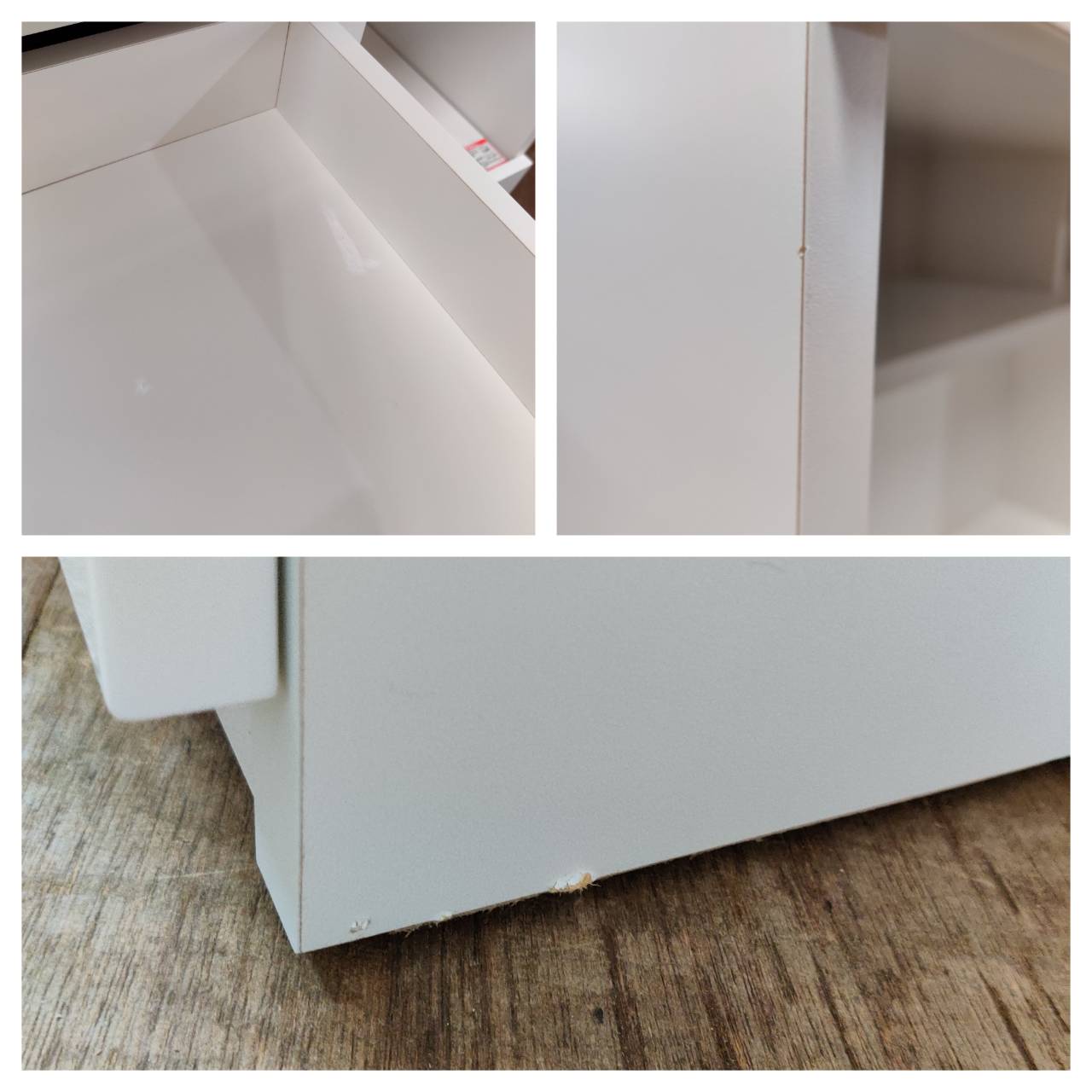 天板エッジ部分に剥がれ、その他各所にキズ・ヨゴレあり。最下段引出2個レール新品交換済。