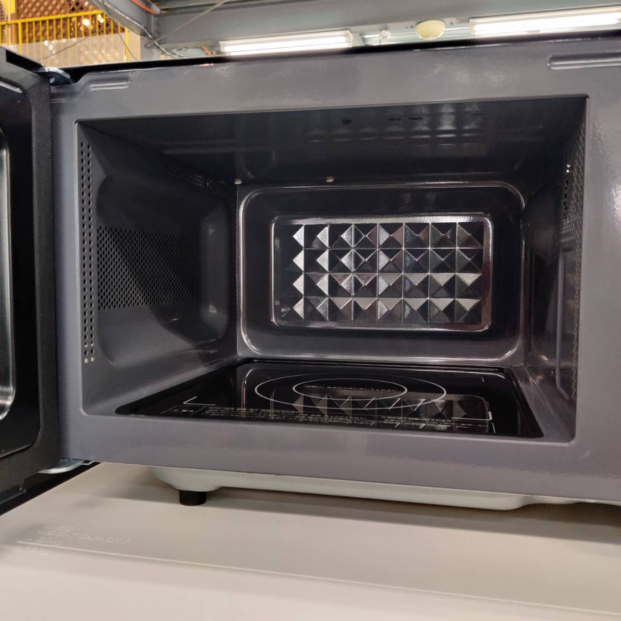 ●庫内は広々、大きなお弁当もあたためやすい。フラット庫内で拭きやすく、お手入れらくらく。