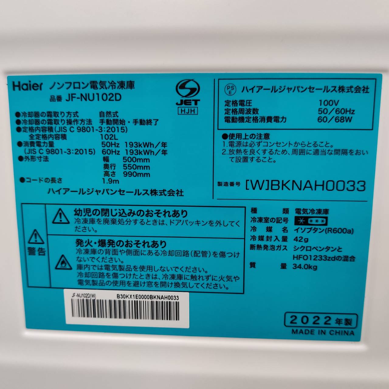 型番 : JF-NU102D