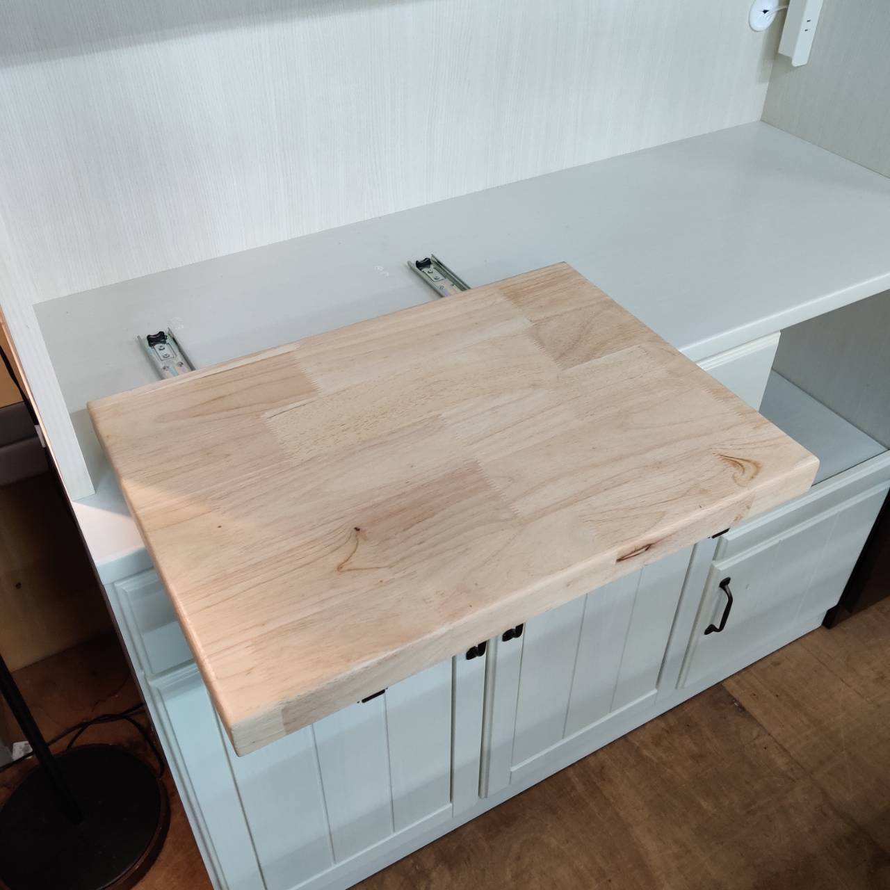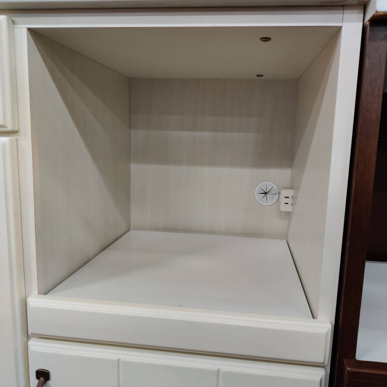 蒸気の出る炊飯器等を置くのに最適なスライドテーブル付きです。