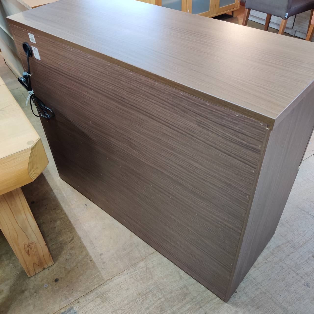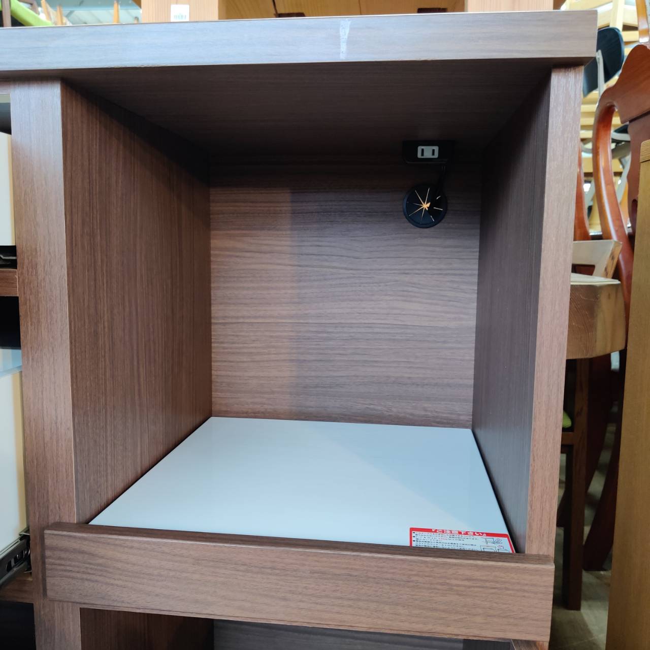引出しの収納力もしっかりあるし、スライド棚には炊飯器やポットを置いて、コンセントも付いているから配線もスッキリ。