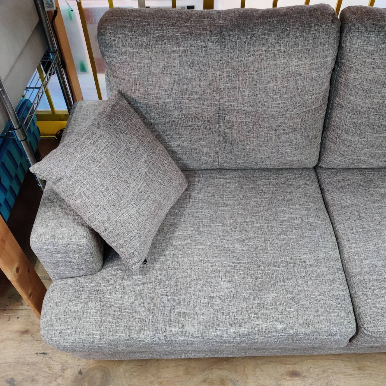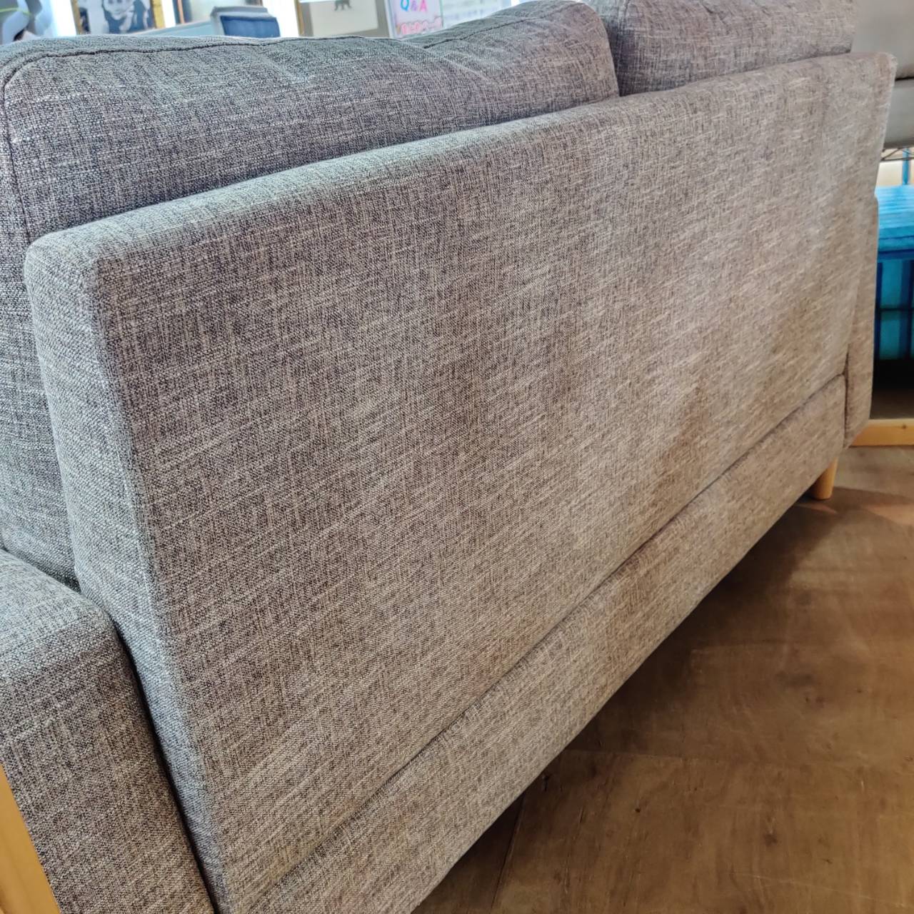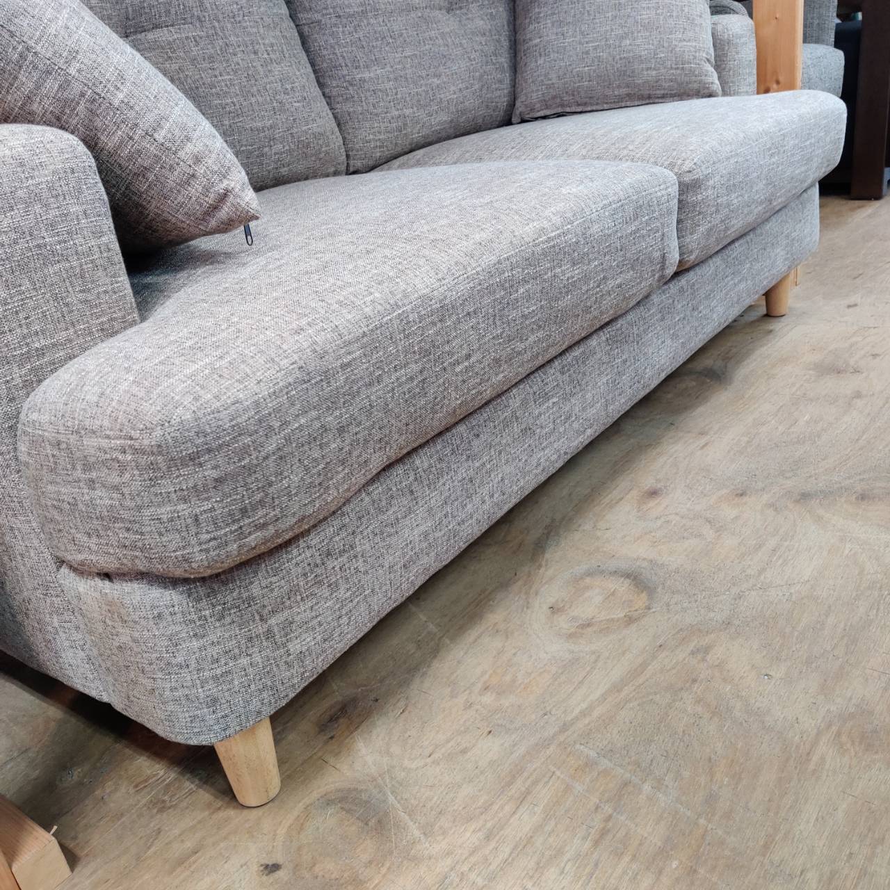 どのようなインテリアにも馴染みやすい、ミックス調のファブリックを用いた二人掛けソファ。